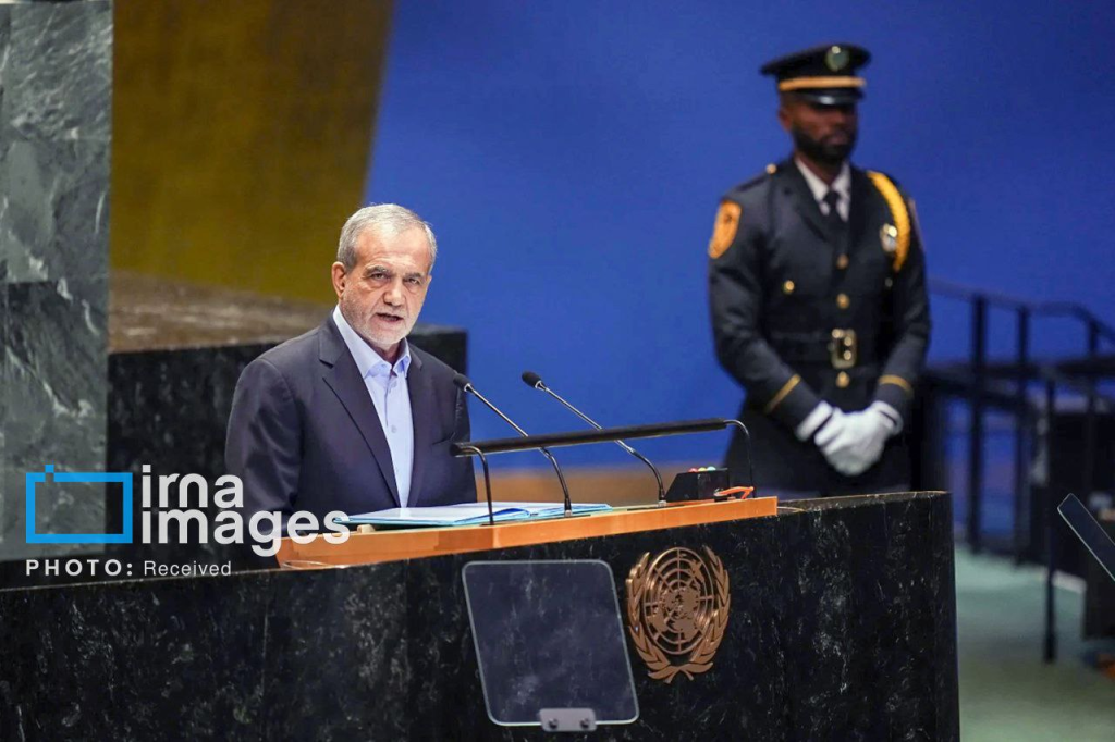 به گزارش نسیم صبا از ایرنا، مسعود پزشکیان روز چهارشنبه ۲مهرماه ۱۴۰۴ در مجمع عمومی سازمان ملل گفت: در دفاع دوازده روزه، مردم میهن دوست و دلاور ایران، محاسبه وهم‌آلود خودستایان متجاوز را به رخ آنان کشیدند. دشمنان ایران، ناخواسته اتّحاد مقدس ملّی را قوام بخشیدند. مردم ایران با وجود شدیدترین، طولانی ترین و سنگین ترین تحریمهای اقتصادی، جنگ روانی و رسانهای و تلاشهای مستمر برای ایجاد تفرقه، به مجرّد شلیک نخستین گلوله به خاکشان، یکپارچه حامی نیروهای مسلح دلیر خود شدند و امروز نیز خون شهدایشان را پاس میدارند.